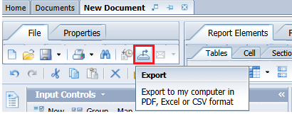 On the New Document panel, click the Export icon to export the reports. |